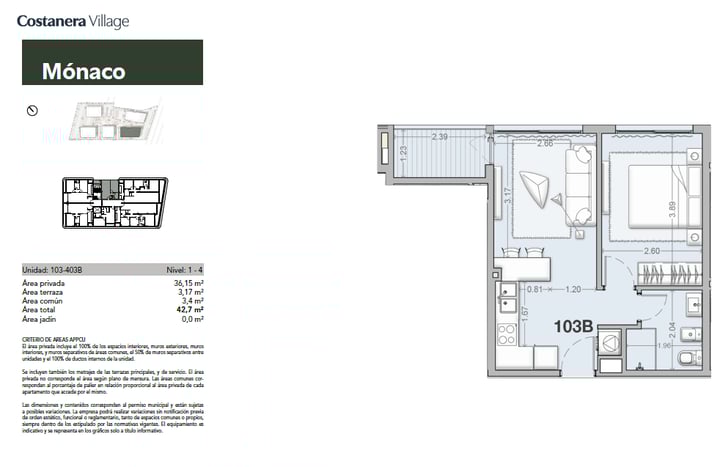 Alquiler apartamento 1 dormitorio con garaje en Costanera Village