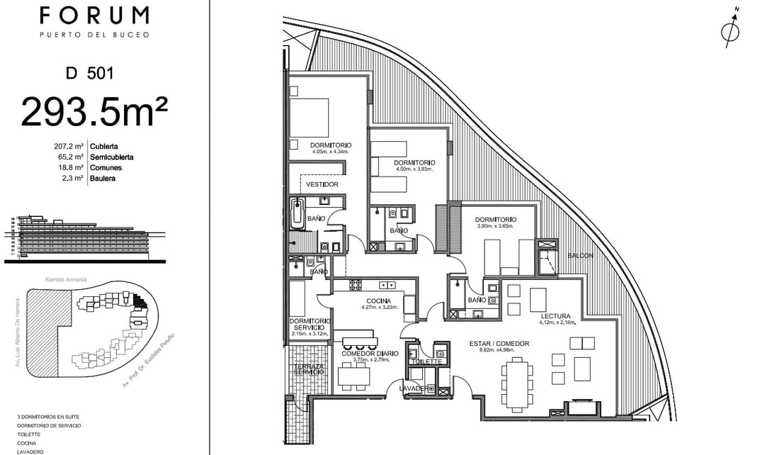 Alquiler FORUM 3 dormitorios en suite y servicio.