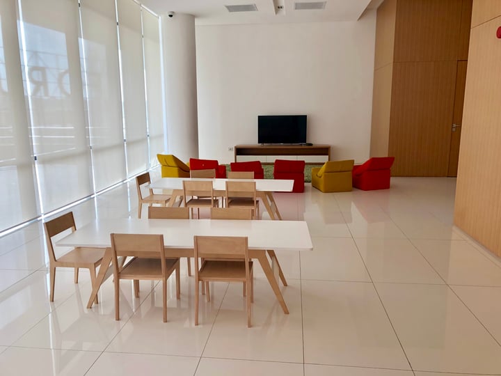 Además el Edificio Forum cuenta con amenities de excelente nivel, tales como: Piscina In - Out, Piscina para niños, Piscina de nado contra corriente, Gimnasio, Vestuarios, Sauna y sala de masajes, Salón de usos múltiples con acceso independiente, Espacio Gourmet, Business Center, Salón para niños y adolescentes, 3.500 m2 de parque, Vigilancia 24 hs, Grupo electrógeno para áreas comunes.