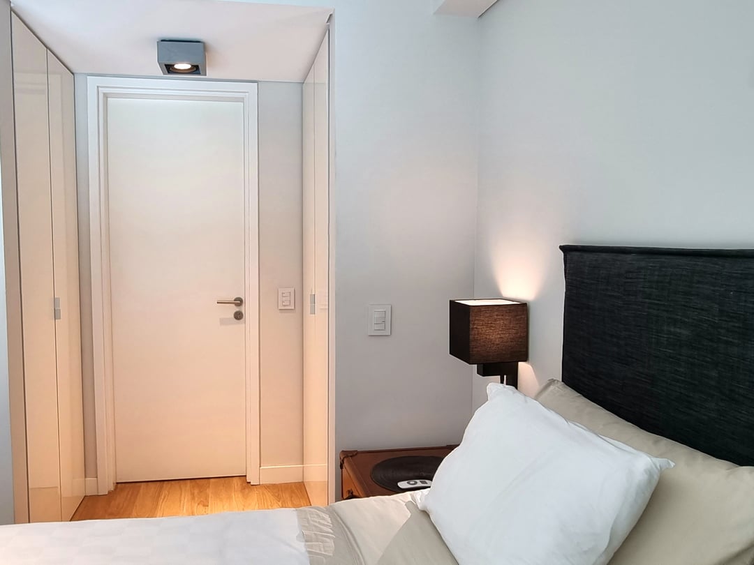 La unidad cuenta con 1 dormitorio en suite con cama King y somier Español. Amplios placards con interiores de Todesquini.