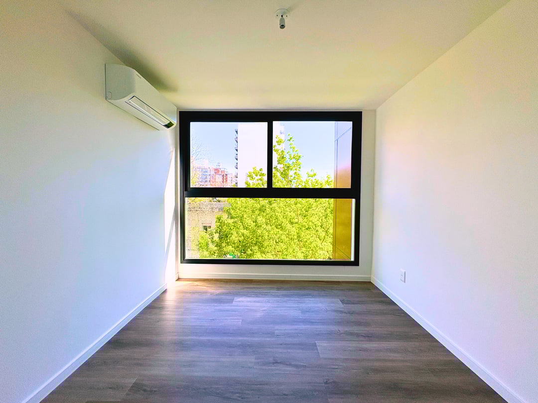 Ingreso a la unidad con cerradura digital. Living - comedor espacioso, con aire acondicionado, puerta ventana con salida a balcón que otorga iluminación natural y vista despejada. Cocina semi integrada con muebles bajo mesada y aéreos proporcionando gran espacio de guardado y mayor comodidad, mesada de granito y diseño moderno. Equipada con horno, anafe, campana y calefón. Dormitorio amplio con aire acondicionado y gran ventanal que garantiza excelente iluminación natural y vista despejada. Baño completo con acabados de primera.