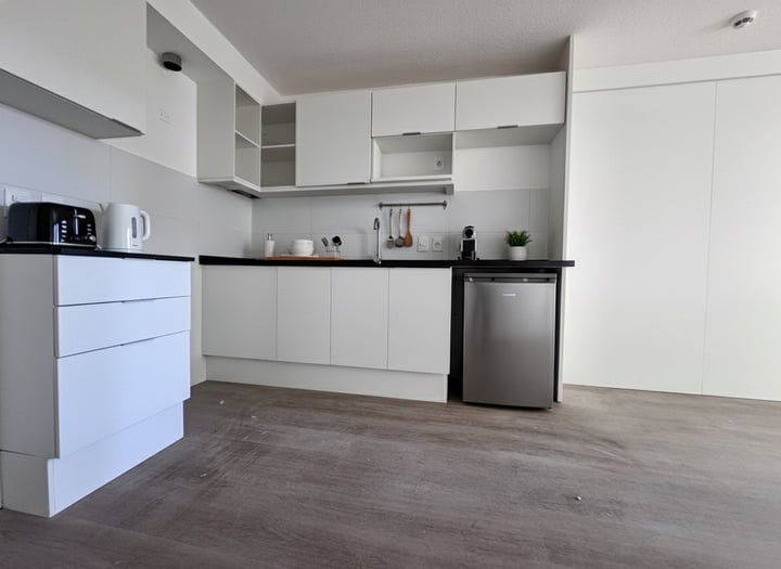 Espacios Flexibles: La unidad de 1 dormitorio presenta un concepto innovador: sus dos ambientes principales se dividen mediante paneles móviles, brindando una excepcional versatilidad de uso. Esto le permite transformar el espacio según su necesidad: un amplio loft abierto o un apartamento tradicional con privacidad en el dormitorio.
