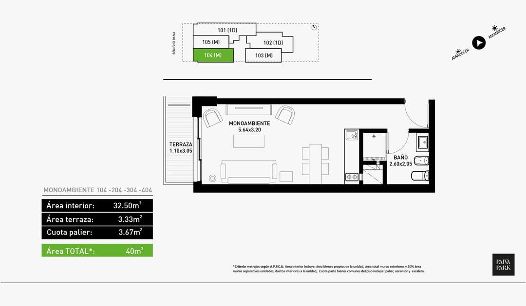 Alquiler de hermoso monoambiente a estrenar en Buceo en Paiva Park II.