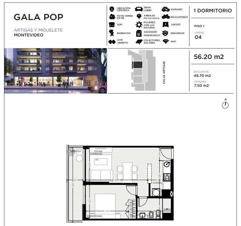 ¡Apartamento de 1 dormitorio en edificio GALA POP!