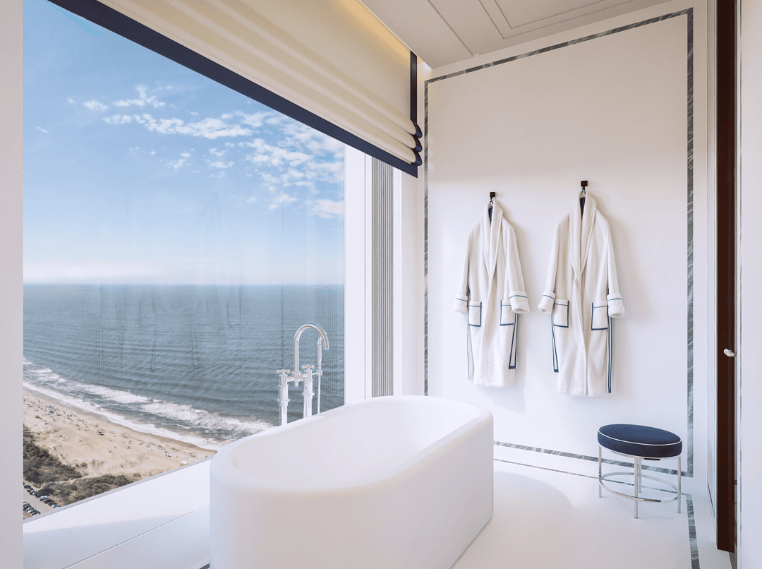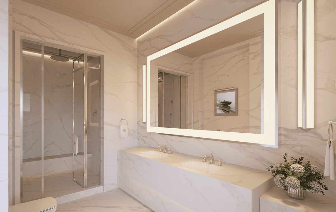 El dormitorio principal es una máster suite excepcional, un retiro de gran tamaño que incluye un elegante vestidor. El baño principal es un santuario de relajación, destacando por su bañera y finas terminaciones.