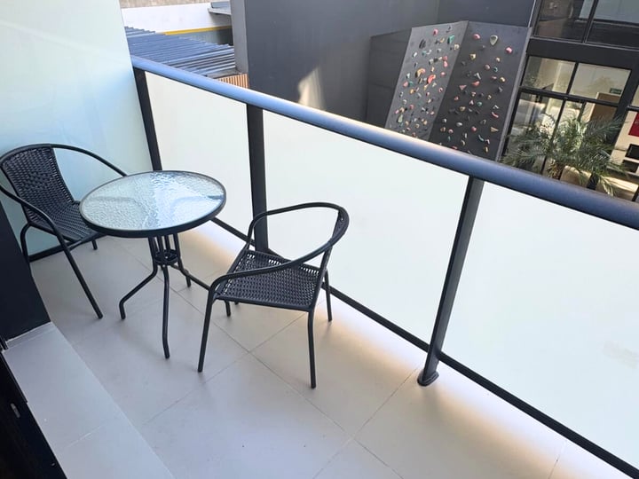 Ambiente cómodo, funcional y con muy buena iluminación natural gracias a sus ventanales con salida a balcón.