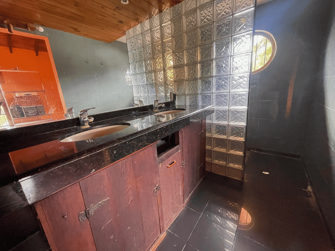 Amplio quincho abierto con barbacoa, baño y bar, para actualizar.
