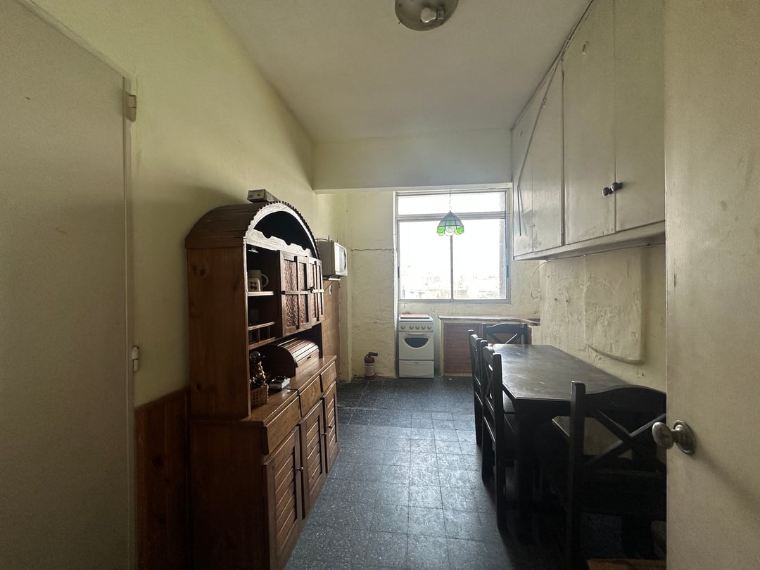 La unidad ofrece un gran living comedor con salida a balcón sobre la avenida, cocina definida con entrada de servicio y espacio para comedor diario al lateral, muy luminosa.