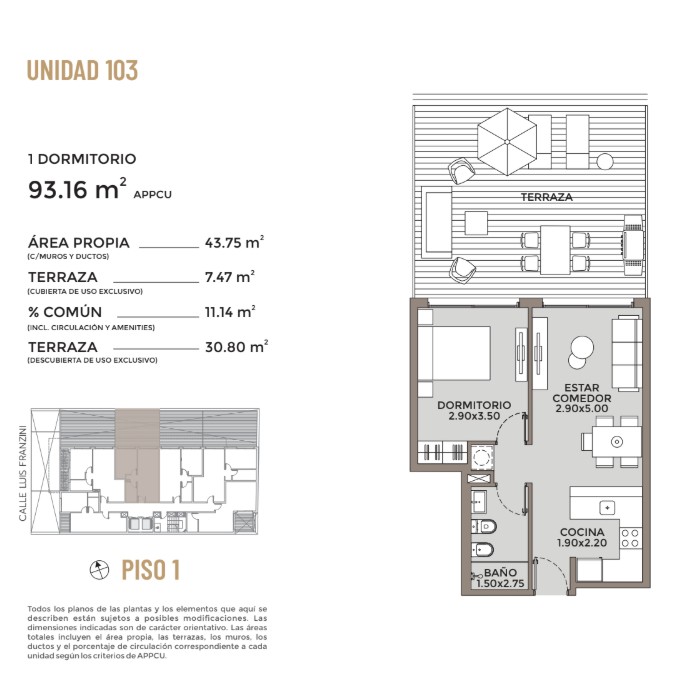 La unidad se ubica en el primer piso al lateral con orientación Norte. Una planta cómoda y funcional, terminaciones de categoría. Living comedor con cocina semi integrada, un dormitorio y un baño.
