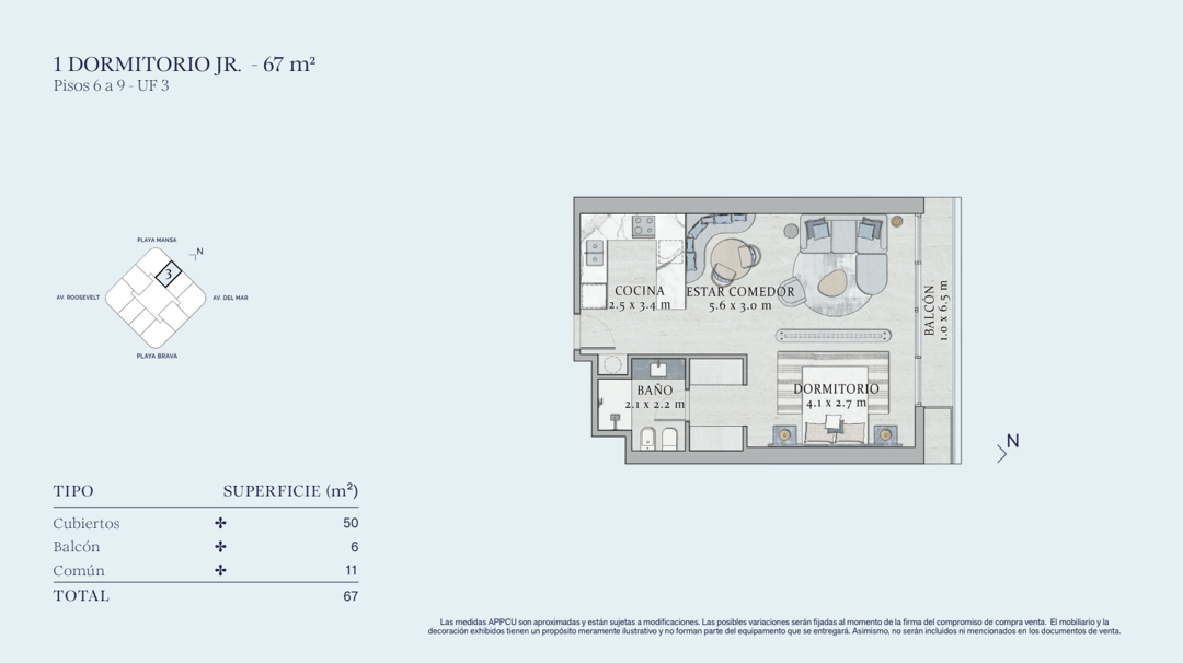 Descubra este moderno y funcional apartamento 1 dormitorio junior de 67 m² totales, con una ubicación inmejorable y orientación norte que garantiza gran luminosidad.