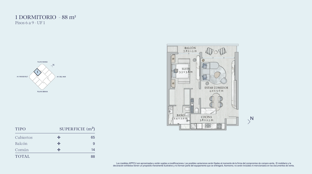 Descubrí este exclusivo apartamento de 1 dormitorio que combina diseño, amplitud y una excelente luminosidad dada su orientación.