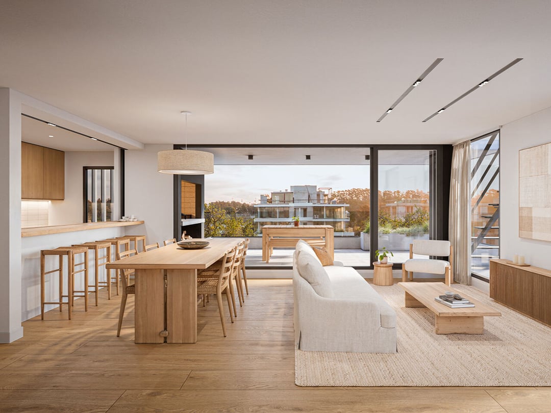Calefacción por losa radiante eléctrica y aire acondicionado para mantener la temperatura ideal durante todo el año.