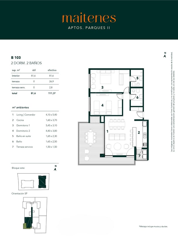 Descubre esta exclusiva unidad de 2 dormitorios y 2 baños, ubicada en el primer piso del proyecto Maitenes, en el prestigioso Barrio Parques II. Con una entrega programada para el segundo semestre de 2026, esta es tu oportunidad de invertir en un hogar moderno y funcional.