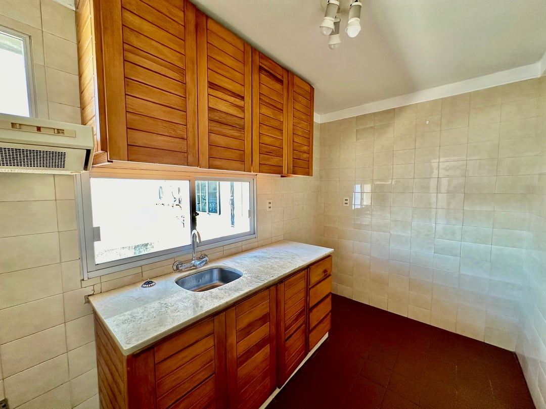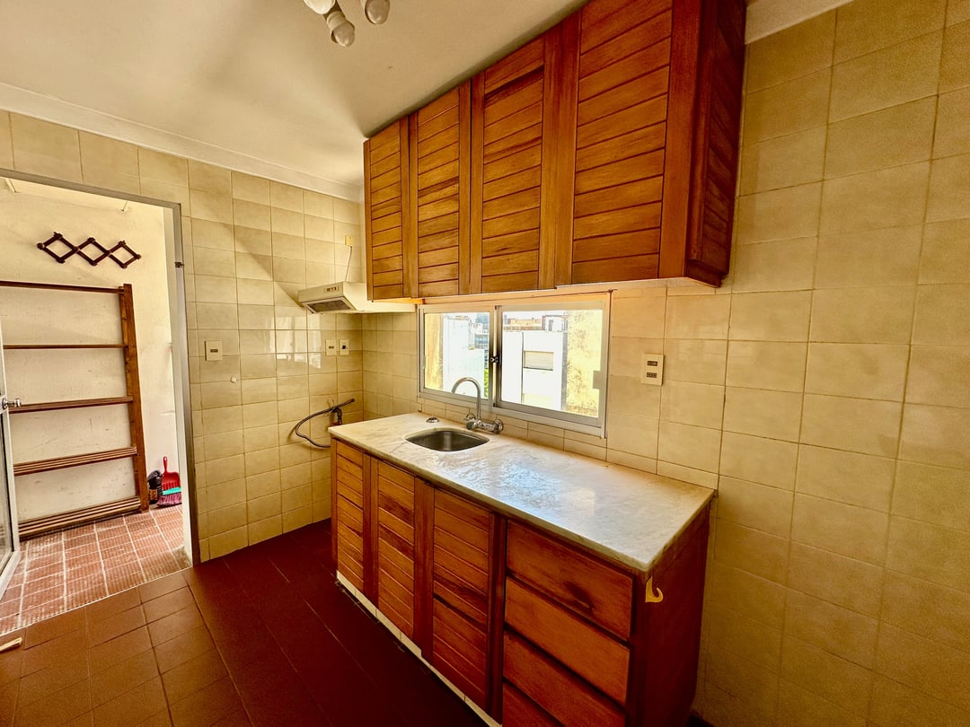 El área social cuenta con un amplio living-comedor al frente, con salida a una terraza cómoda y disfrutable, ideal para relajarse o recibir visitas. La cocina definida está equipada con campana, gas por cañería y muebles en madera maciza, se conecta a la terraza lavadero, que dispone de conexión para lavarropas y caldereta.