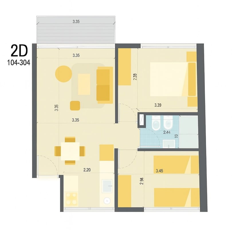 Dormitorios principal al frente, segundo dormitorio al contrafrente.