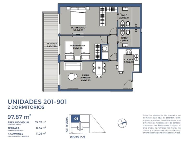 Apartamento en venta de 2 dormitorios en Brío Rivera, ubicado en Rivera ente Ponce y Obligado - Pocitos, incomparable en términos de comodidad y accesibilidad. Estamos sobre unos de los principales conectores este - oeste, a pocas cuadras del Parque Batlle.