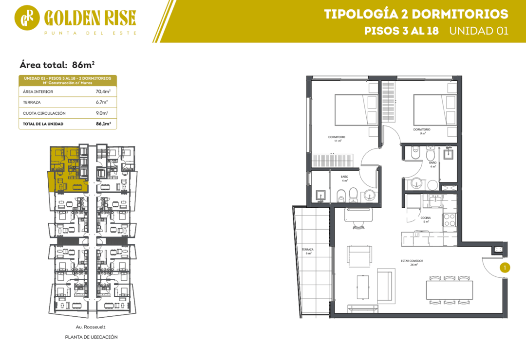 Venta de apartamento de 2 dormitorios en Golden Rise, proyecto residencial de vanguardia desarrollado por Grupo Caybo Uruguay, ubicado en la prestigiosa Av. Roosevelt y Salt Lake, en el corazón de Punta del Este, uno de los destinos más atractivos y seguros de Latinoamérica para invertir.