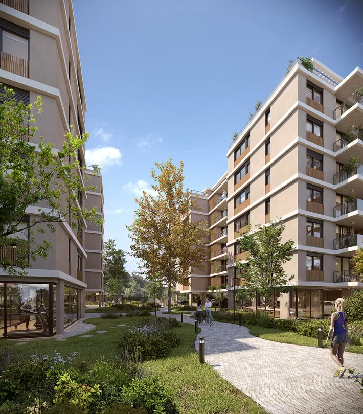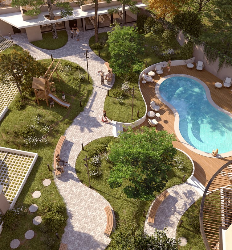 Amenities: Cowork, parking para bicicletas, gimnasio, parque verde y paisajismo, piscina, sum con parrilleros, laundry, solárium y juegos para niños