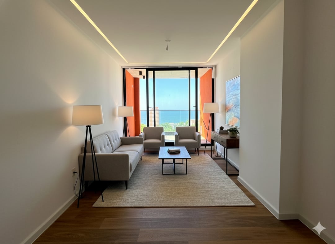 Unidad en el séptimo piso al contrafrente con vista directa a la rambla. Dispone de living comedor con terraza y cocina definida (no incluye electrodomésticos) con terraza lavadero. 2 dormitorios y un baño completo. Cuenta con el sistema de domótica para manejar desde el celular la dinámica del apartamento (control de iluminación, de cortinas y cerraduras electrónicas) y áreas comunes. Se puede vender sin garaje en 168.000usd + gastos de ocupación.