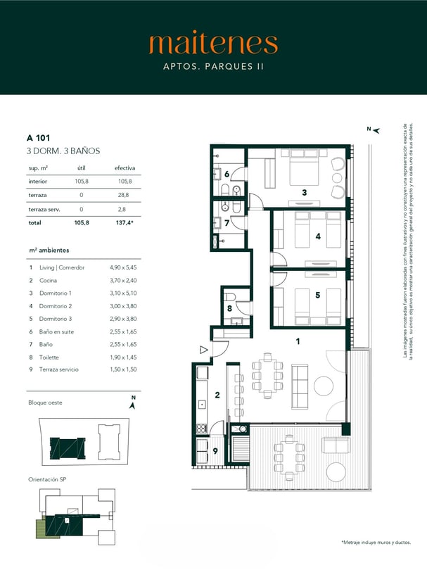 Con solo 24 apartamentos distribuidos en dos edificios, Maitenes te ofrece un ambiente íntimo y sereno. Sus apartamentos han sido diseñados con una distribución funcional y minimalista, optimizando cada rincón para crear espacios amplios y luminosos. Las terminaciones de alta calidad y las vistas abiertas a los jardines circundantes hacen de cada departamento un refugio personal, ideal para desconectar del ajetreo diario.