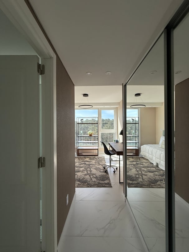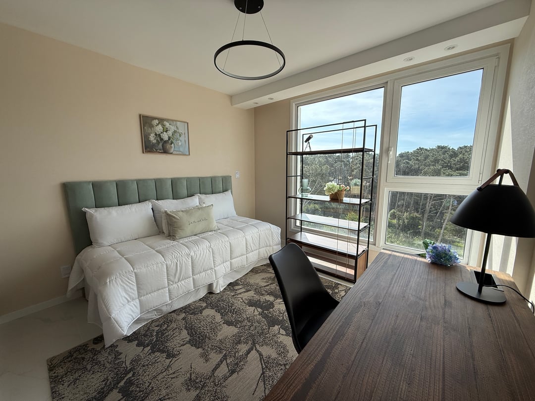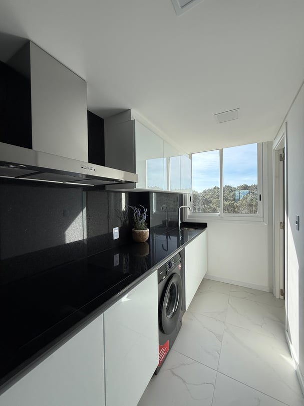 Desde el área social, el hall te lleva a la cocina, totalmente equipada, un espacio funcional y moderno con cuarto y baño dependencia. Un pasillo discreto, con el práctico baño social, nos conduce a las áreas privadas. Las dos suites secundarias, ambas con baño propio, aseguran independencia y comodidad para toda la familia o invitados.