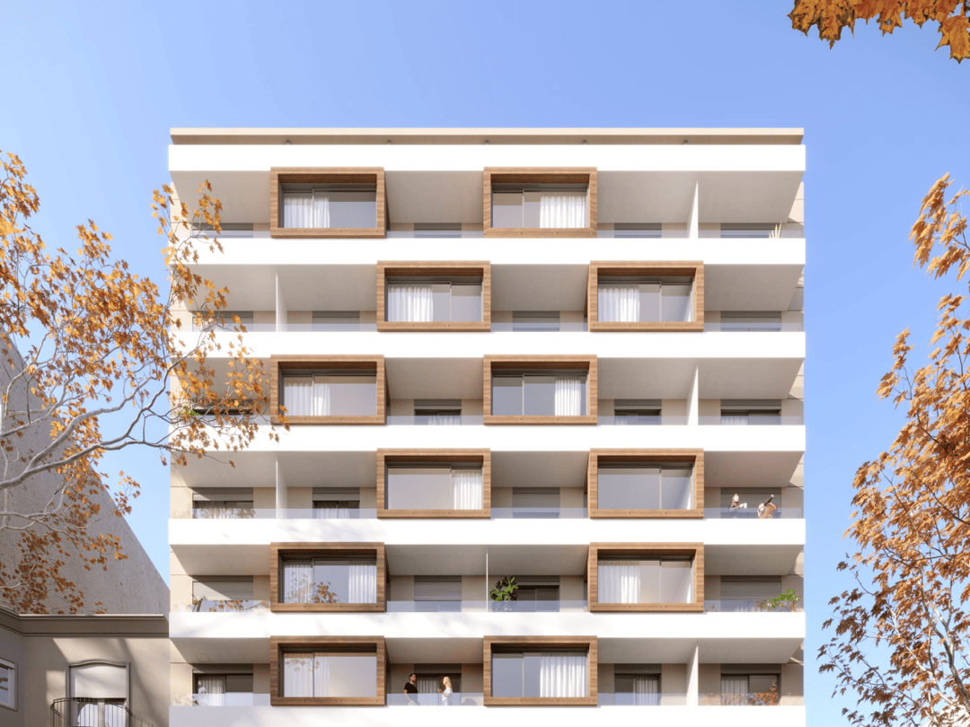 El edificio tiene 10 pisos, con un total de 88 unidades, todas con terraza y buena orientación. Dispone de 44 plazas de garaje ubicadas en planta baja y subsuelo, hall de acceso equipado y 2 ascensores de última generación. En la azotea se encuentran 2 barbacoas de uso común, ambas equipadas con parrilleros, cocina y baños.