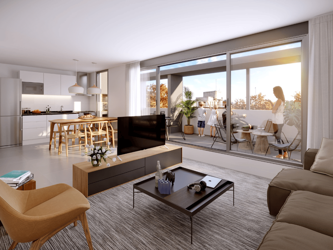 Las terminaciones se destacan por su calidad, con aberturas de aluminio, cortinas de enrollar en el dormitorio, pisos flotantes vinílicos y porcelanato de primera calidad. Cuenta con preinstalación para aire acondicionado en todos los ambientes, así como para lavarropas y calefón.