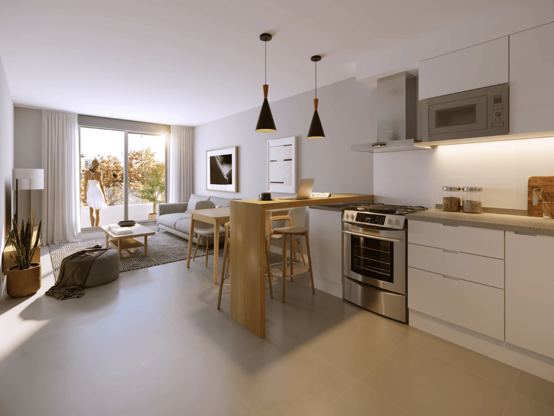 Unidad en el quinto piso, con orientación oeste y disposición contrafrente, lo que asegura buena iluminación y un ambiente tranquilo. Dispone de un luminoso living comedor y cocina semiintegrada, un amplio dormitorio con placard completo y un baño de diseño moderno y funcional.