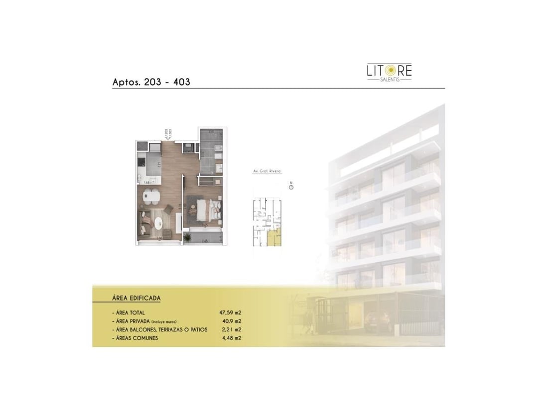 Venta de apartamento de 1 dormitorio en Salentis Litore, ubicado Rivera esquina Atlántico, en el corazón de Malvín. En un punto de oferta comercial y de servicios, con muy buena locomoción. A pocas cuadras de la rambla y rodeado de verde.