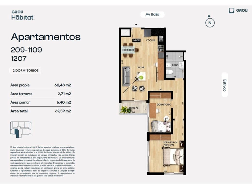 Apartamento en venta de 2 dormitorios en GROU Habitat, ubicado en Av. Italia y Estivao, excelente punto en Parque Batlle zona de gran accesibilidad, con movilidad a cualquier parte de la ciudad.