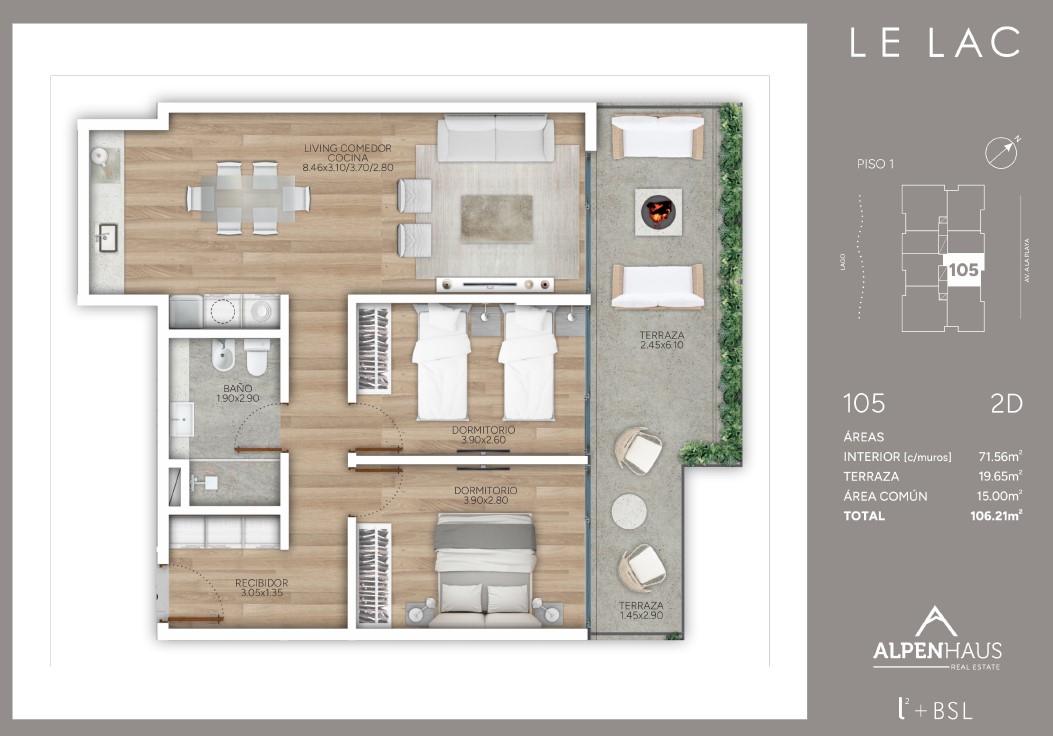 Contará con amplias amenities como: barbacoa con living, gimnasio, piscina exterior climatizada, solárium, losa radiante, laundry, estación eléctrica, bicicletero y vistas panorámicas.