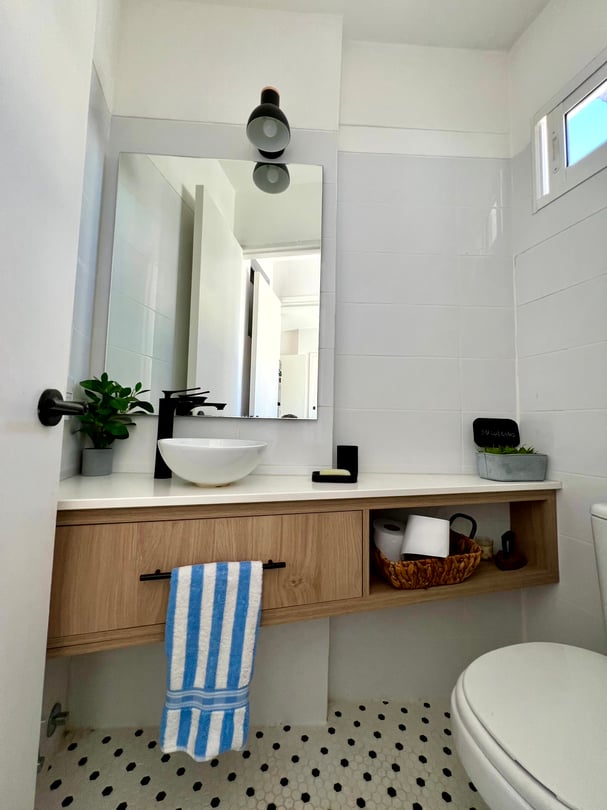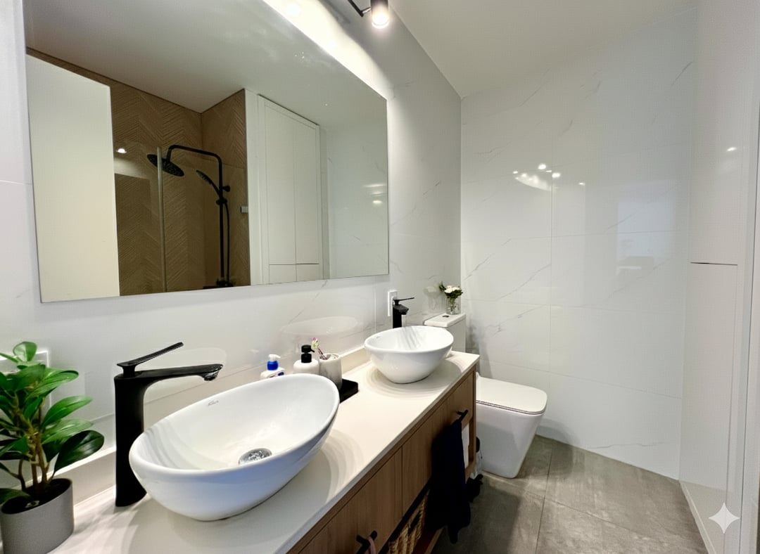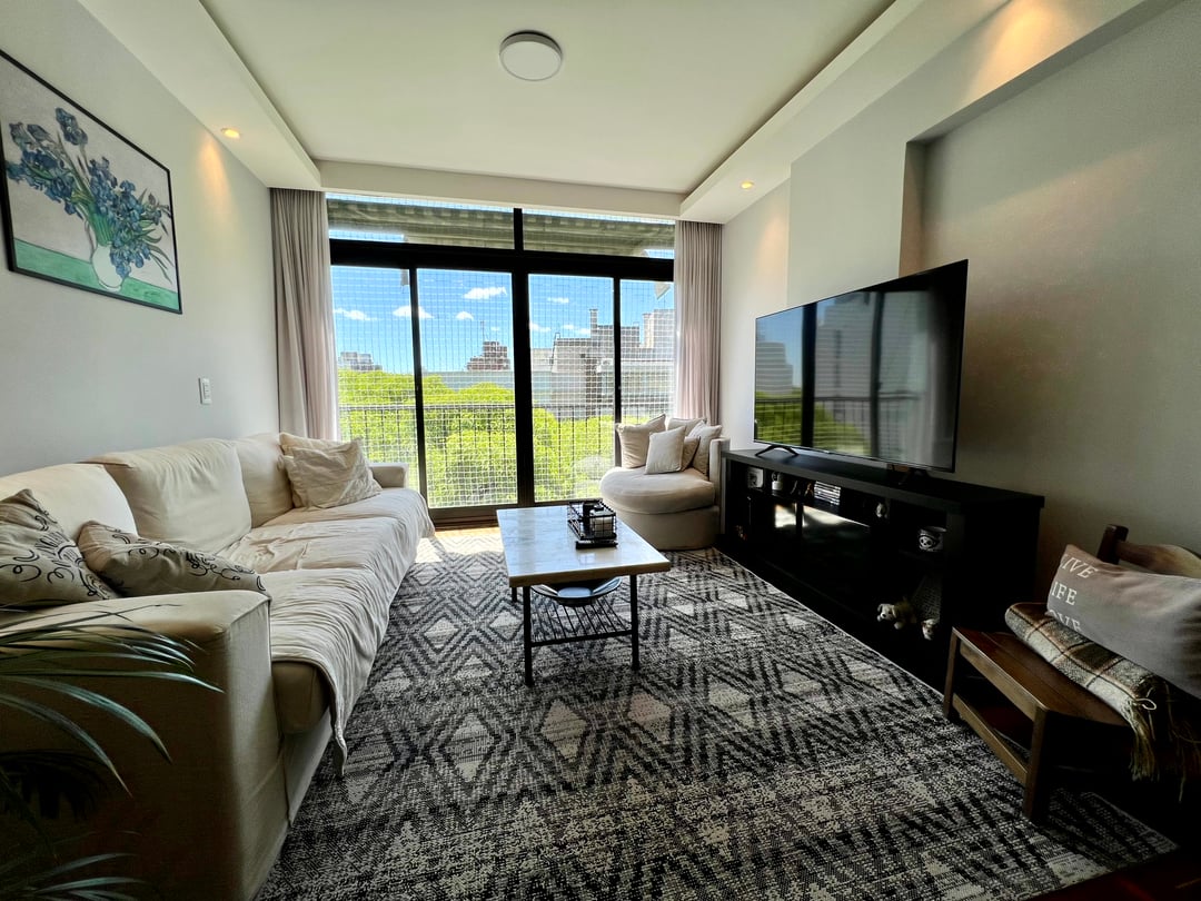 Dos dormitorios de buenas dimensiones con placares empotrados, dos baños —uno completo y otro social— y un hall de distribución con armario organizador. Todas las aberturas son DVH.