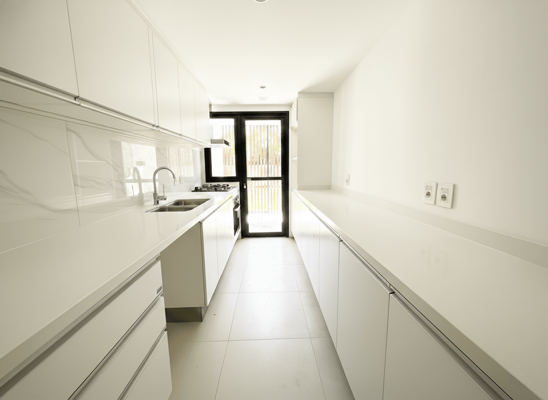 Además de las amenities de nivel: piscina exterior con deck solárium, barbacoa de uso común, sistema de seguridad integral, previsión para autos eléctricos, bicicleteros y garajes cerrados en subsuelo.