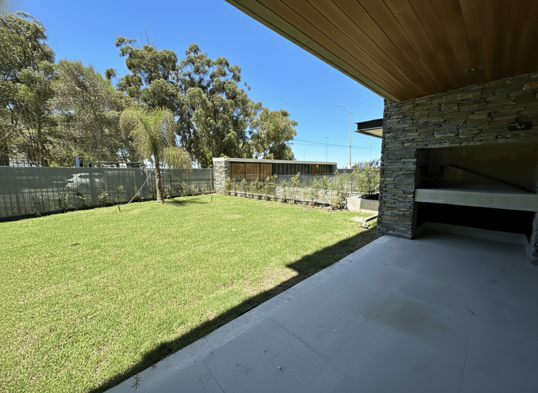 La unidad de tres dormitorios, está ubicada en planta baja, al frente, con orientación Este. Cuenta con living comedor con estufa, cocina definida con acceso a terraza lavadero, 3 dormitorios (el principal en suite con vestidor), amplio jardín con parrillero en galería e incluye dos garajes.