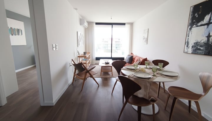 Innovador proyecto residencial emplazado sobre Av. de las Américas, en el entorno privilegiado del lago Miramar, Ciudad de la Costa, Canelones. Combina diseño moderno y amenities, a metros del puente de las Américas
