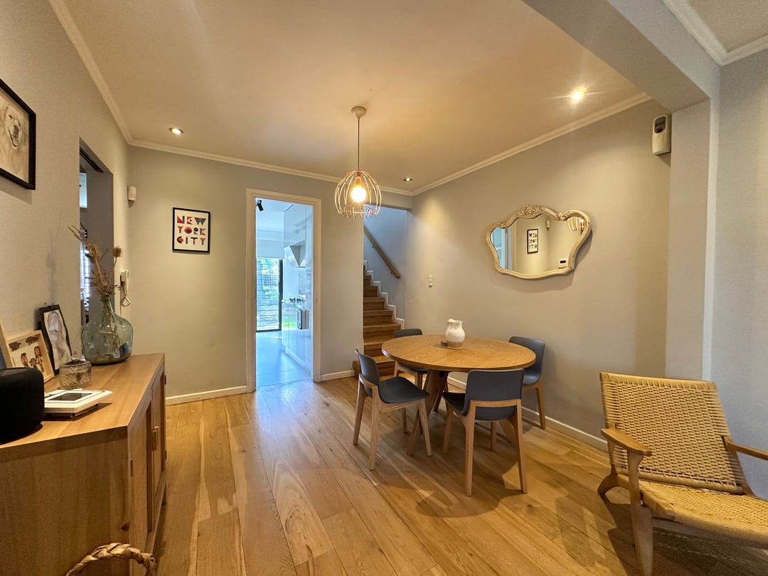 En la planta baja, la propiedad ofrece una distribución inteligente que prioriza la comodidad diaria. Cuenta con un living comedor de excelentes dimensiones que conecta con una cocina definida, totalmente renovada y con gran capacidad de almacenamiento. En este mismo nivel se encuentran dos dormitorios amplios con buena entrada de luz natural y un baño completo. Al frente, la casa dispone de una cochera abierta para un vehículo.