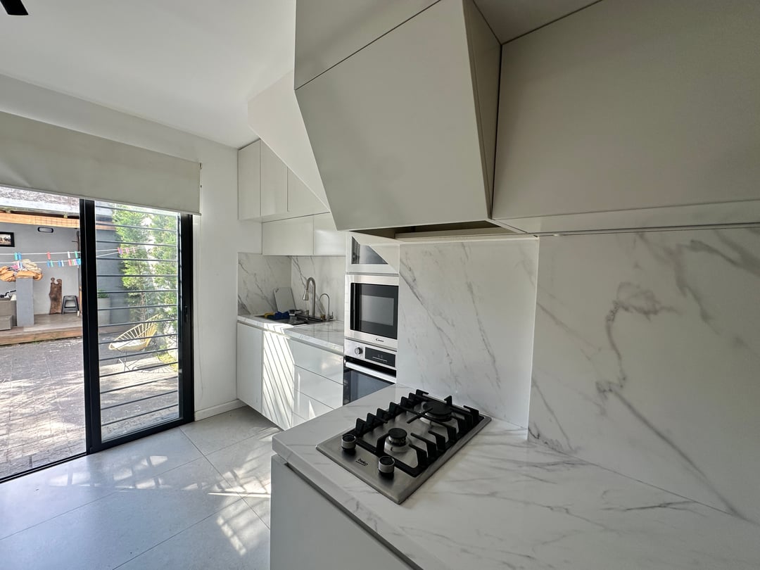 El área exterior es uno de los grandes atractivos de la propiedad, ofreciendo un jardín privado con parrillero techado. Este espacio está pensado para el disfrute social y familiar durante todo el año, funcionando como una extensión del hogar en un entorno seguro y despejado. La calidad de los materiales utilizados en la reforma garantiza durabilidad y un bajo mantenimiento a futuro.