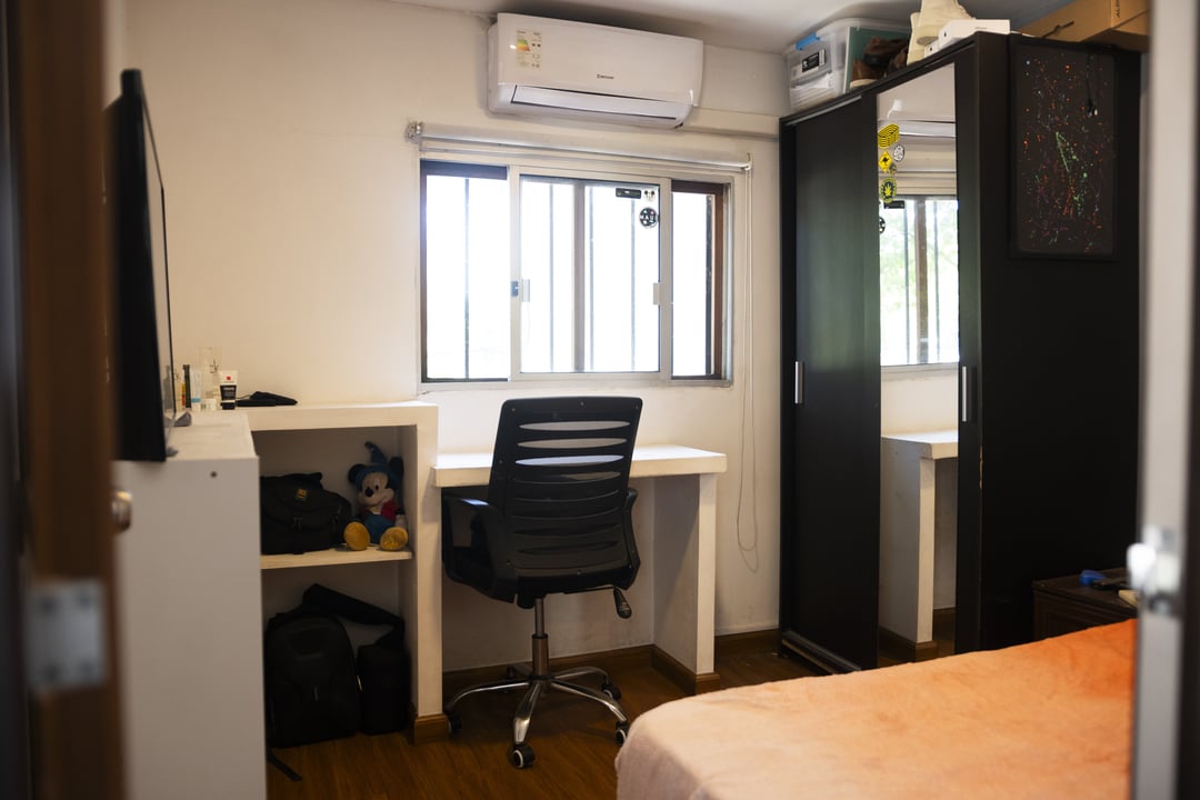 - Tres dormitorios con placares: Dos dormitorios se encuentran en la planta alta y uno en la planta baja, todos con aires acondicionados y placares para un óptimo almacenamiento.