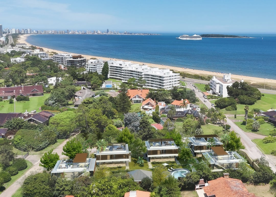SEE HOUSING: A pasos del mar sobre la Playa Mansa, Punta del Este, un complejo privado de 10 residencias en doble altura que combinan la comodidad de un apartamento con la independencia de una casa.