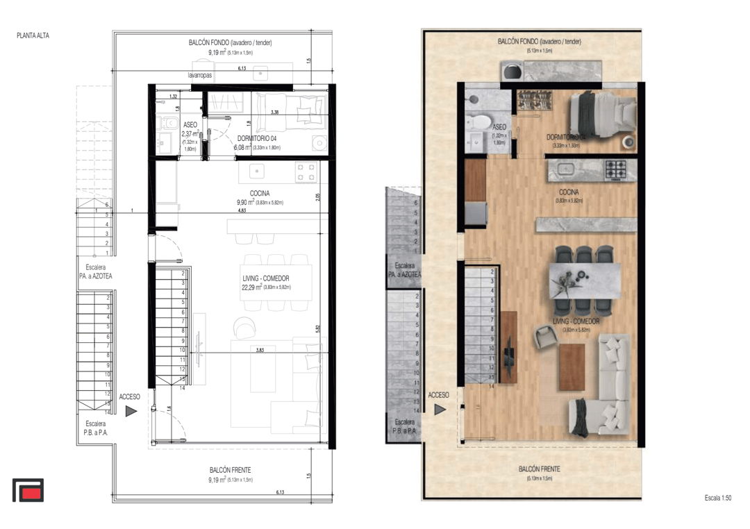 Cada unidad cuenta con 3 dormitorios más servicio, living en planta alta con vista al mar, terraza con pérgola y parrillero, además de garaje para dos autos.