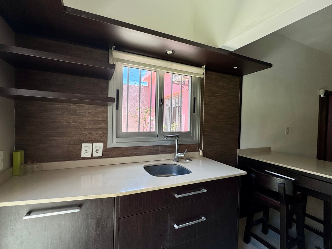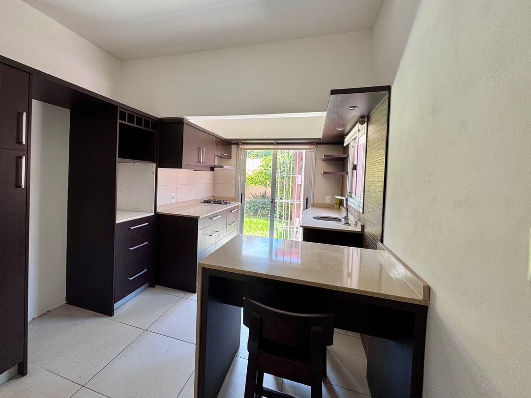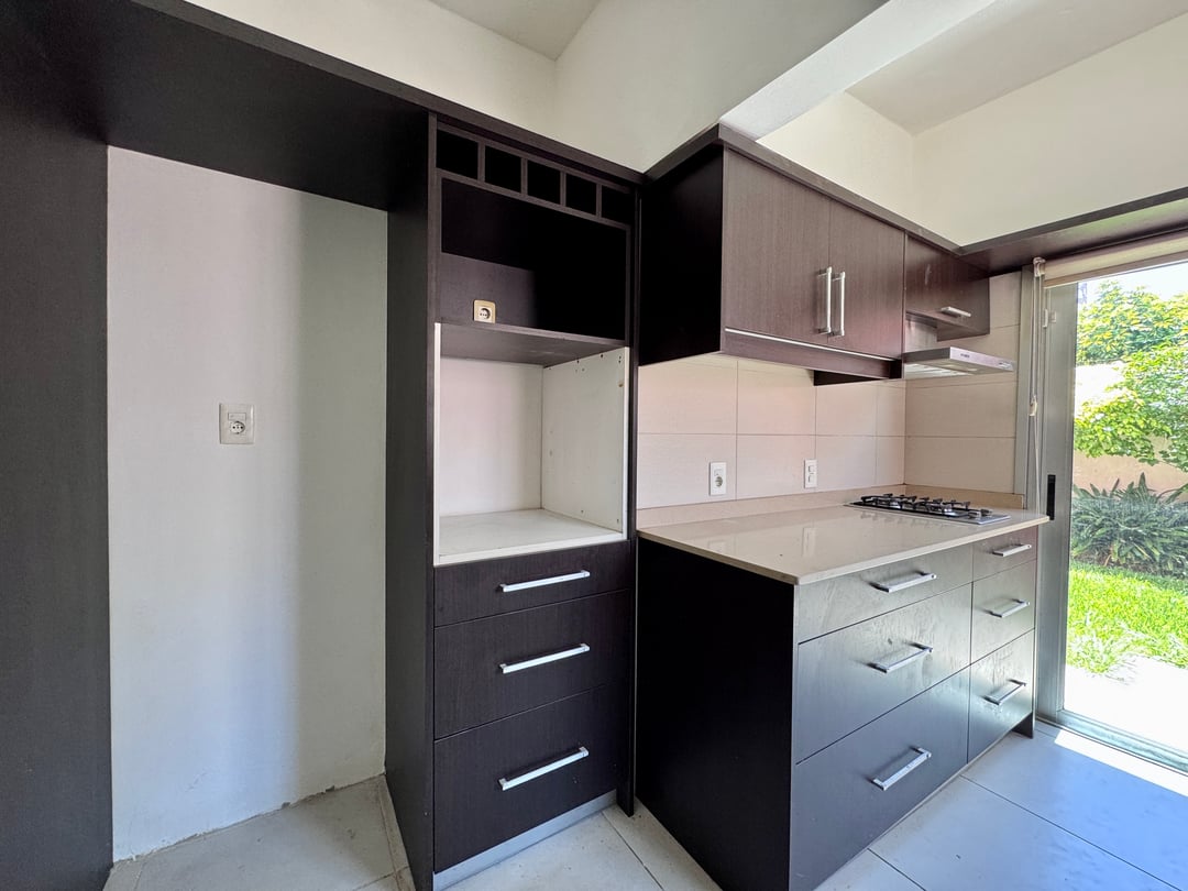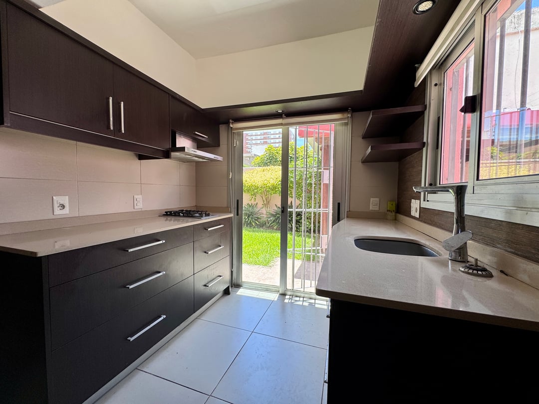 La cocina, orientada al norte, tiene salida a un cálido y disfrutable jardín, con parrillero techado.