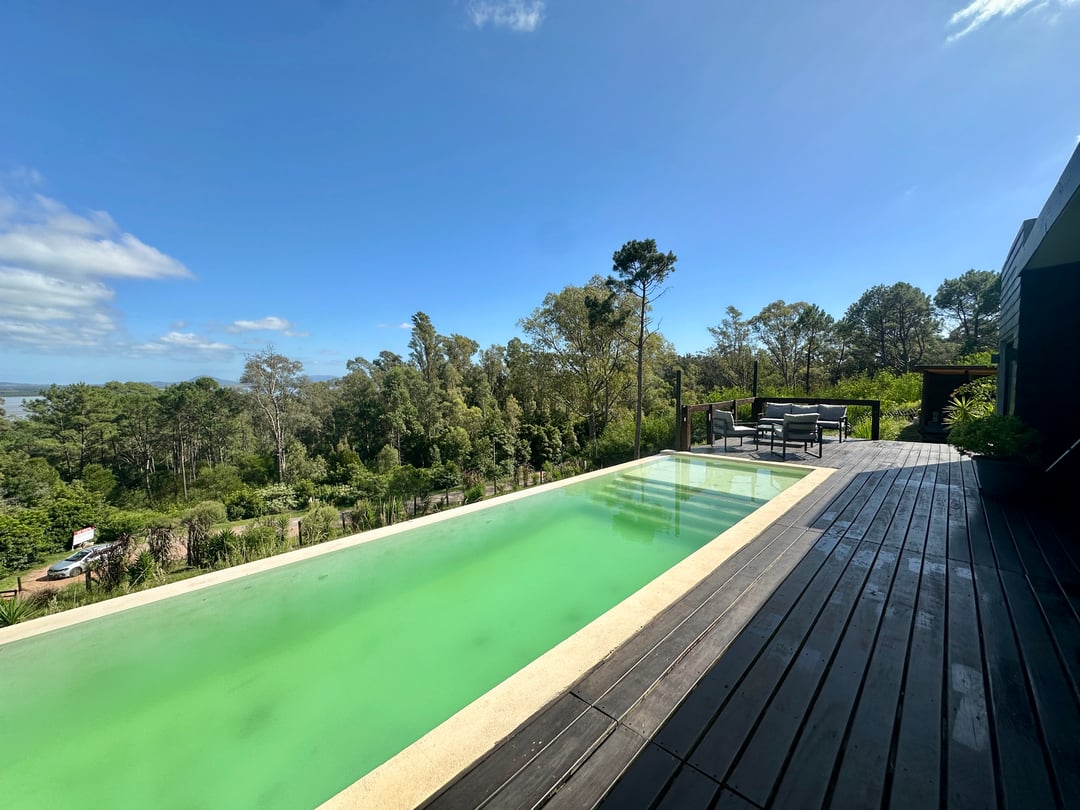 Piscina infinita, protagonista absoluta con visuales panorámicas al bosque, al lago y al mar.