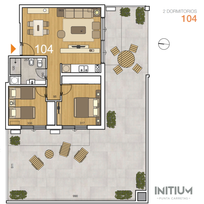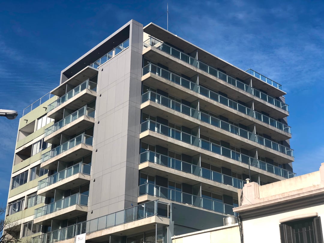 Primer piso, planta esquinera al contrafrente con Orientación Oeste. Amplio living comedor con cocina integrada, dos cómodos dormitorios con placares y salida a la tarraza. Baño completo.