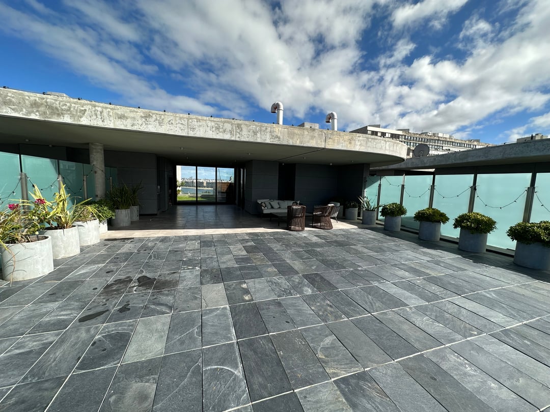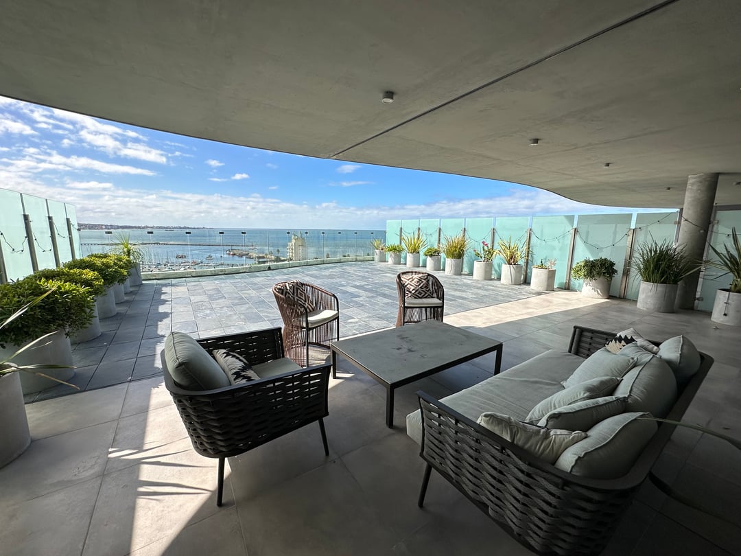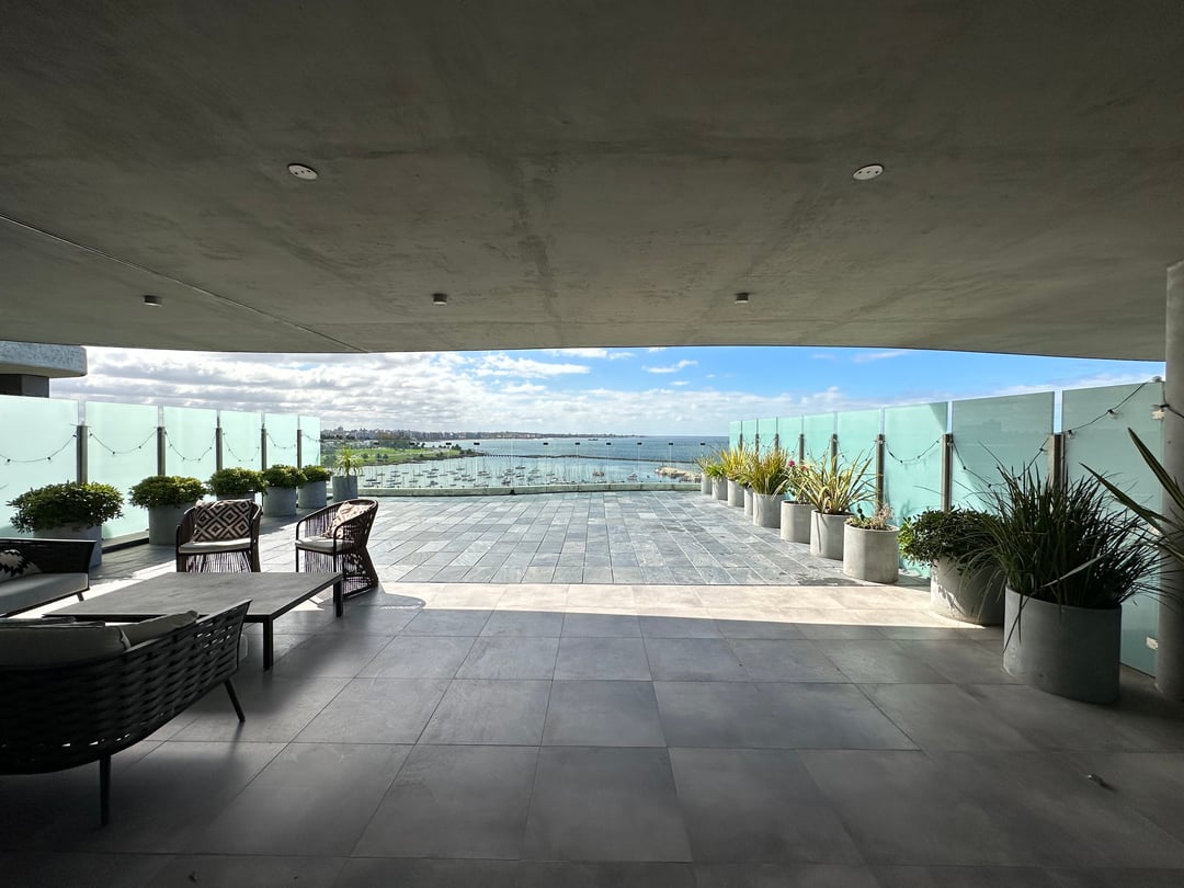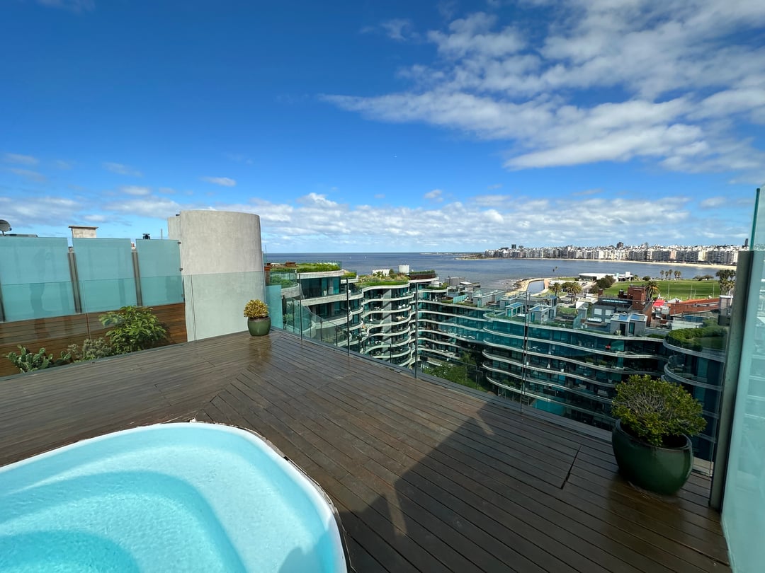 Amplio living comedor, con salida a terraza, con la mejor vista de la costa de Montevideo. Toilette.