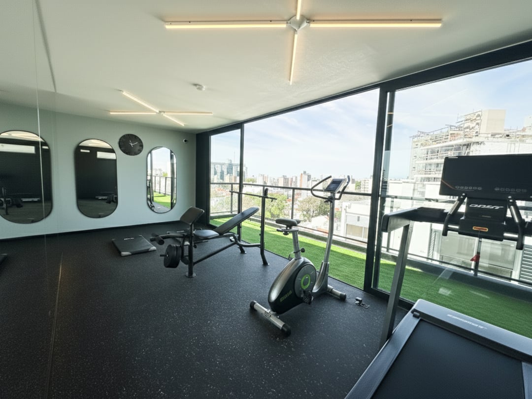 El edificio ofrece amenities en el último piso diseñados para el disfrute y la vida urbana: salón de usos múltiples, gimnasio, rincón infantil, solárium, parrillero interior con kitchenette, parrillero exterior techado y terrazas con vistas a la ciudad.