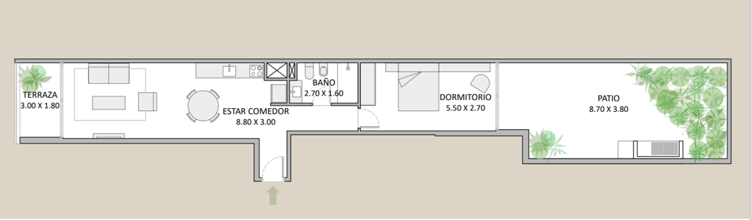 La unidad se encuentra en el primer piso al frente y cuenta con patio de uso exclusivo. Dispone de living comedor con acceso a terraza , cocina integrada, un dormitorio con placard y un baño completo. Garaje simple, no incluido en el precio.