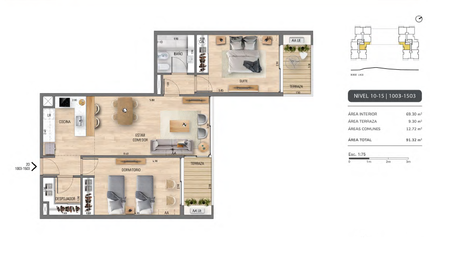 Contará con amenities de nivel: Barbacoas con living, Cowork, Gimnasio, Playroom, Piscina interior y exterior climatizada, Solárium, Seguridad, Laundry, Estación Eléctrica, Bicicletero, Muelle y vistas panorámicas y Kayaks.