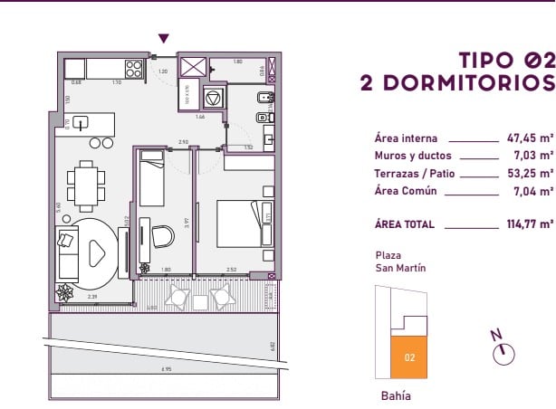 La unidad se encuentra en el primer piso al contrafrente. Ofrece un cómodo living comedor con cocina integrada, dos dormitorios y excelente iluminación natural.
