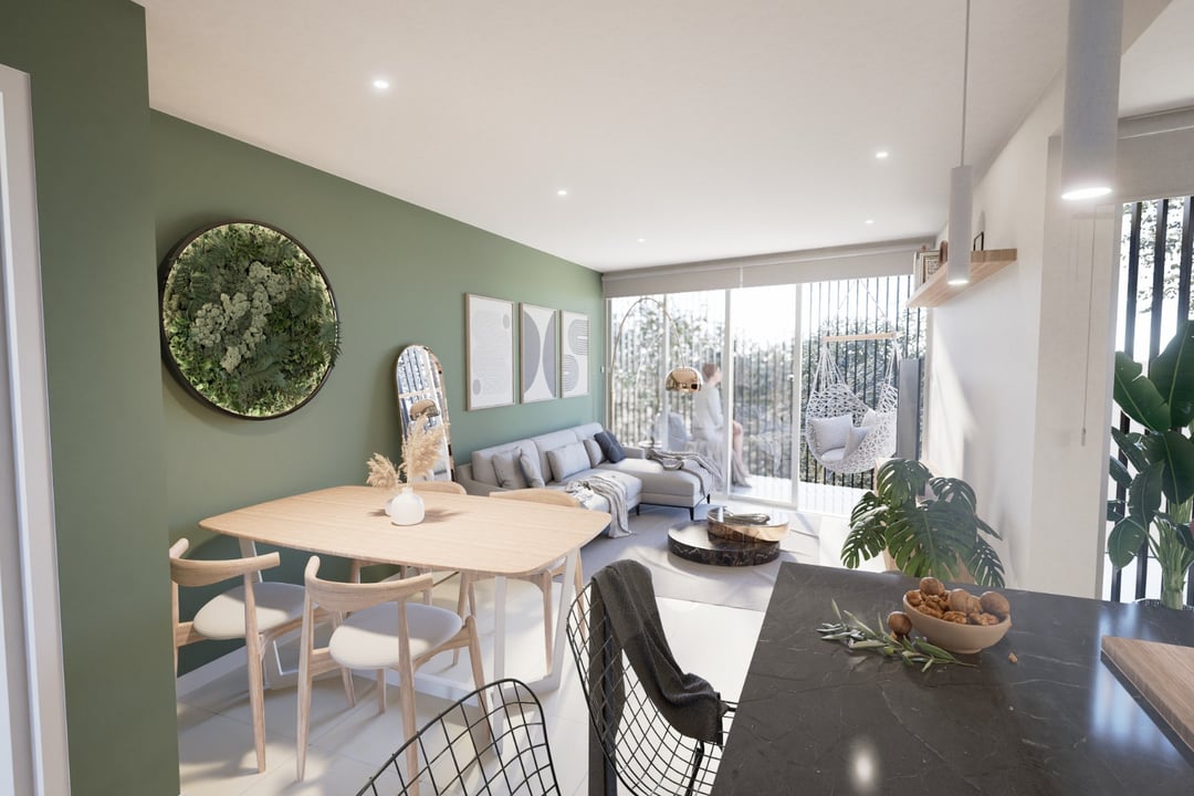 Living comedor con salida al balcón. Cocina integrada.