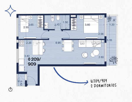 Apartamento de 2 dormitorios en Winks Magallanes, ubicado en Palermo, Magallanes entre Canelones y Maldonado.